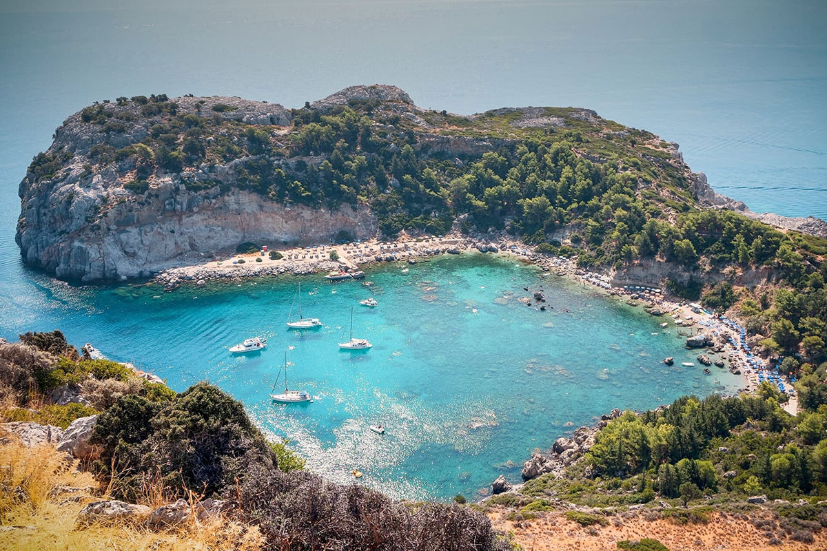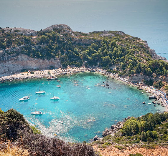 around Rhodes. Discover hidden coves, swim in crystal-clear