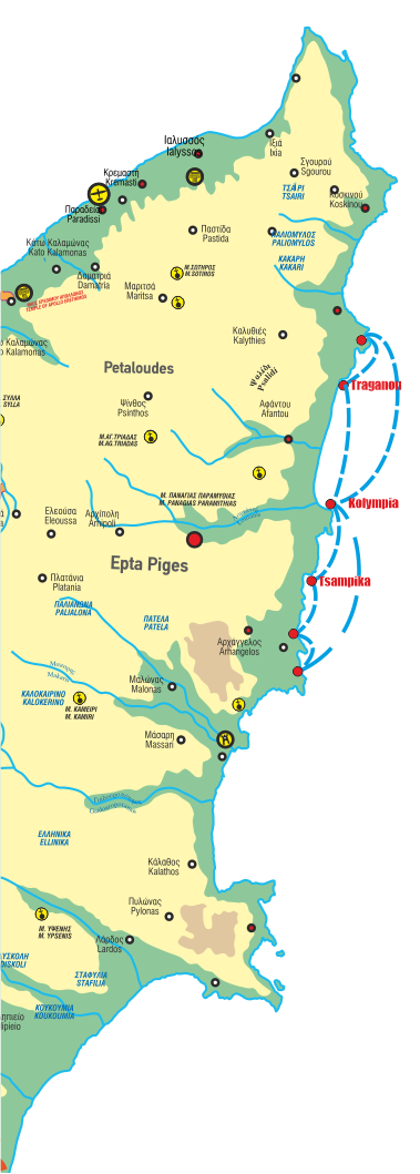 One of the most famous beaches in Rhodes, Tsampika offers long stretches of golden sand and shallow, crystal-clear waters. A paradise for sunbathers and families alike!